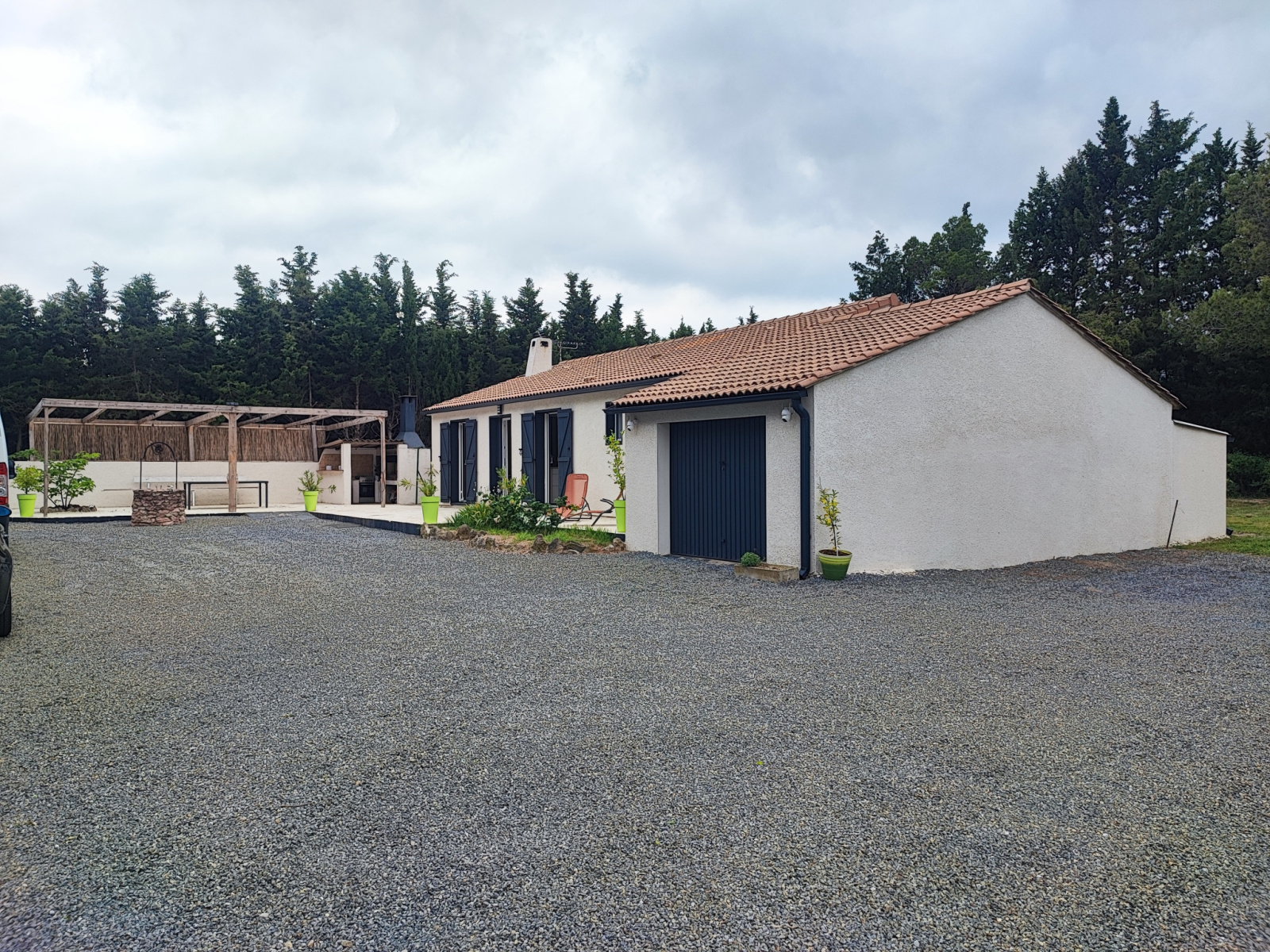 Petite dépendance (poulallier, chenil...), garage de 29 m², 2 terrasses dont 1 avec coin barbecue, pergola de 75m²