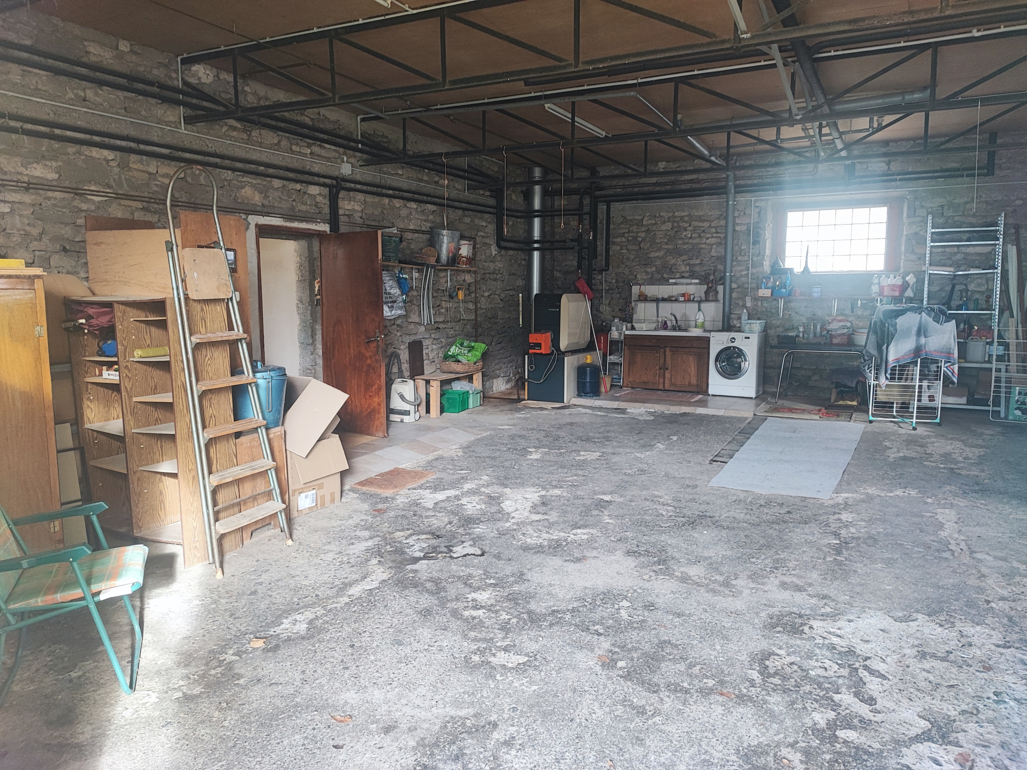 2 entrées, garage de 90 m²avec fosse, un appartement indépendant en RDC ( Cuisine, séjour/ salon, salle d'eau / wc, 1 chambre)